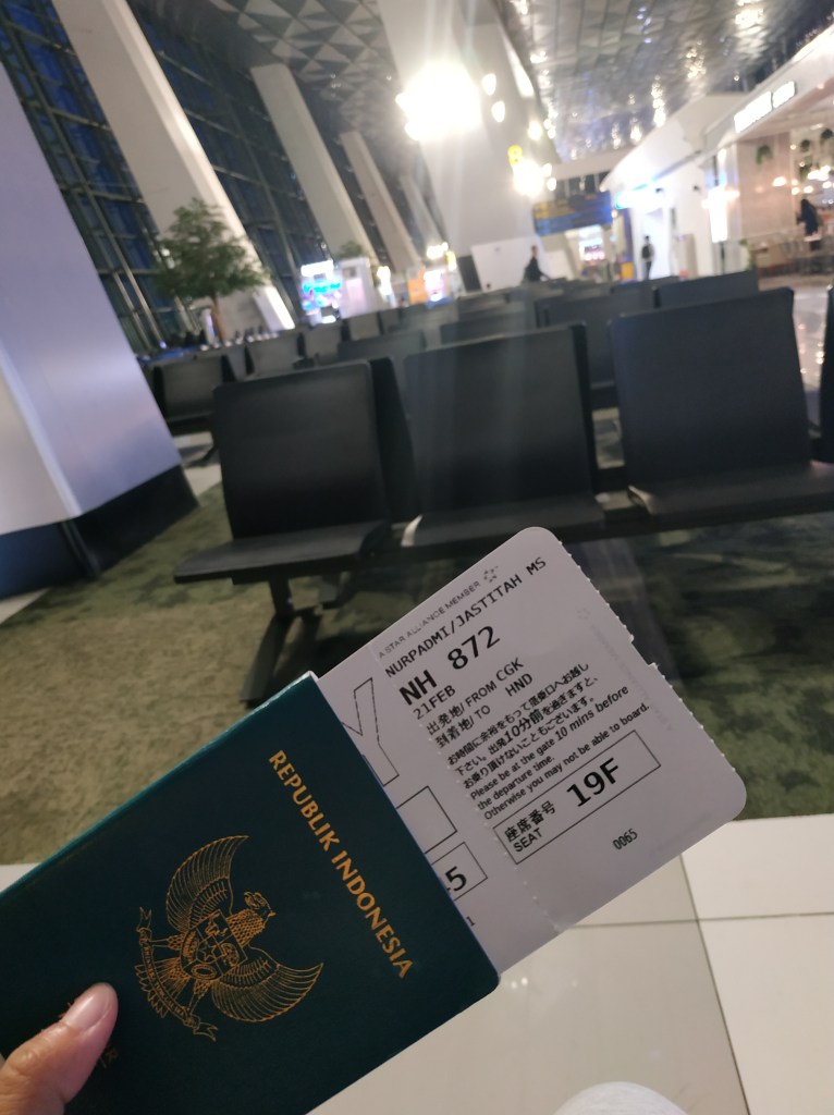 Dan tibalah saatnya tanggal keberangkatan kita yaitu pukul 07.00 pagi, yang dimana kita harus berangkat dari subuh sekali untuk bisa sampai disana 2 atau 3 jam sebelum jam keberangkatan. Sangat antusias! Cuma sedikit agak cemas, karena disaat itu mulai terdeteksi virus covid di Jepang. Namun belom ada kebijakan bahwa bandara ditutup ataupun lainnya dan kita tetap mempersiapkan segala hal, seperti masker kesehatan, hand sanitize, dan lainnya.