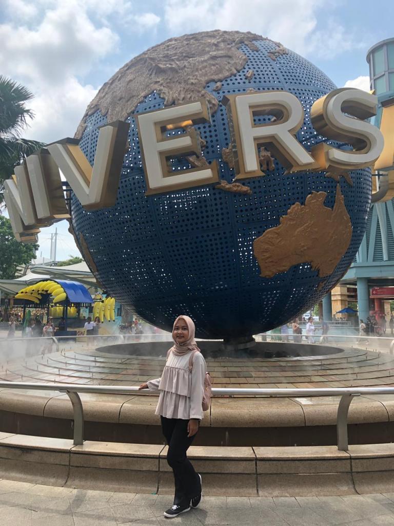 Ini wahana permainan paling keren yang ada di Singapura sehingga wajib hukumnya untuk datang lalu foto di bunderan globe-nya. Yah, lumayan walaupun tidak bayar dan masuk main ke Universal Studio Singapore, yang penting telah berfoto di patung globe ini 😀