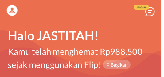 Saya mungkin salah satu user awal Flip sejak platform ini terbentuk. Dimana saat itu proses transaksinya masih menggunakan website, bahkan proses verifikasinya masih dilakukan secara manual. Untuk verifikasi manualnya, saya masih ingat jelas ada tim Flip yang menunggu di stasiun UI, Pondok Cina, Depok, dan beberapa stasiun lainnya di hari dan jam yang telah ditentukan. Ohya di aplikasi ini pun mencatat historis transaksi saya, ”Halo Jastitah, kamu telah menghemat Rp 988.500 sejak menggunakan FLIP”.
