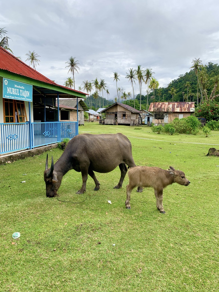 Mata pencaharian penduduk disini adalah sebagai nelayan, beternak dan berkebun. Waktu kemarin aku kesini, ada seorang ibu yang sedang menjemur buah pinang. Buah pinang ini sebelumnya baru dipanen, kemudian harus dijemur terlebih dahulu untuk setelahnya dijual ke kota. Dan kita pun melihat kerbau-kerbau yang sedang memakan rumput.