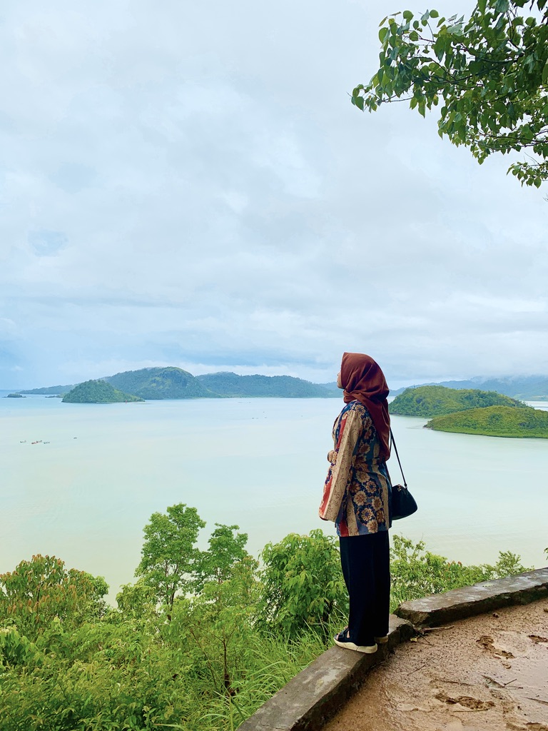 Dari Puncak Mandeh, kita bisa melihat gugusan pulau, seperti Pulau Soetan Kecil, Sironjong besar dan kecil serta Pulau Cubadak dan gradasi warna air laut yang indah. Iya benar, seperti di Raja Ampat panoramanya! Bagus sekali bukan? Aku tidak henti-hentinya mengucapkan syukur ketika berada di Puncak Mandeh ini.