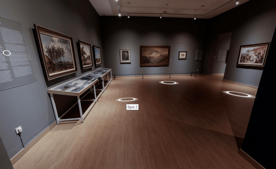 Virtual tour tour ini persis sekali dengan tata letak asli yang ada di Galeri Nasional Indonesia. Ketika masuk kedalam galeri, akan ada lingkaran yang bisa kita lihat di lantai. Ini menunjukkan urutan spot untuk kita bisa runtut melihat karya seni yang ada.