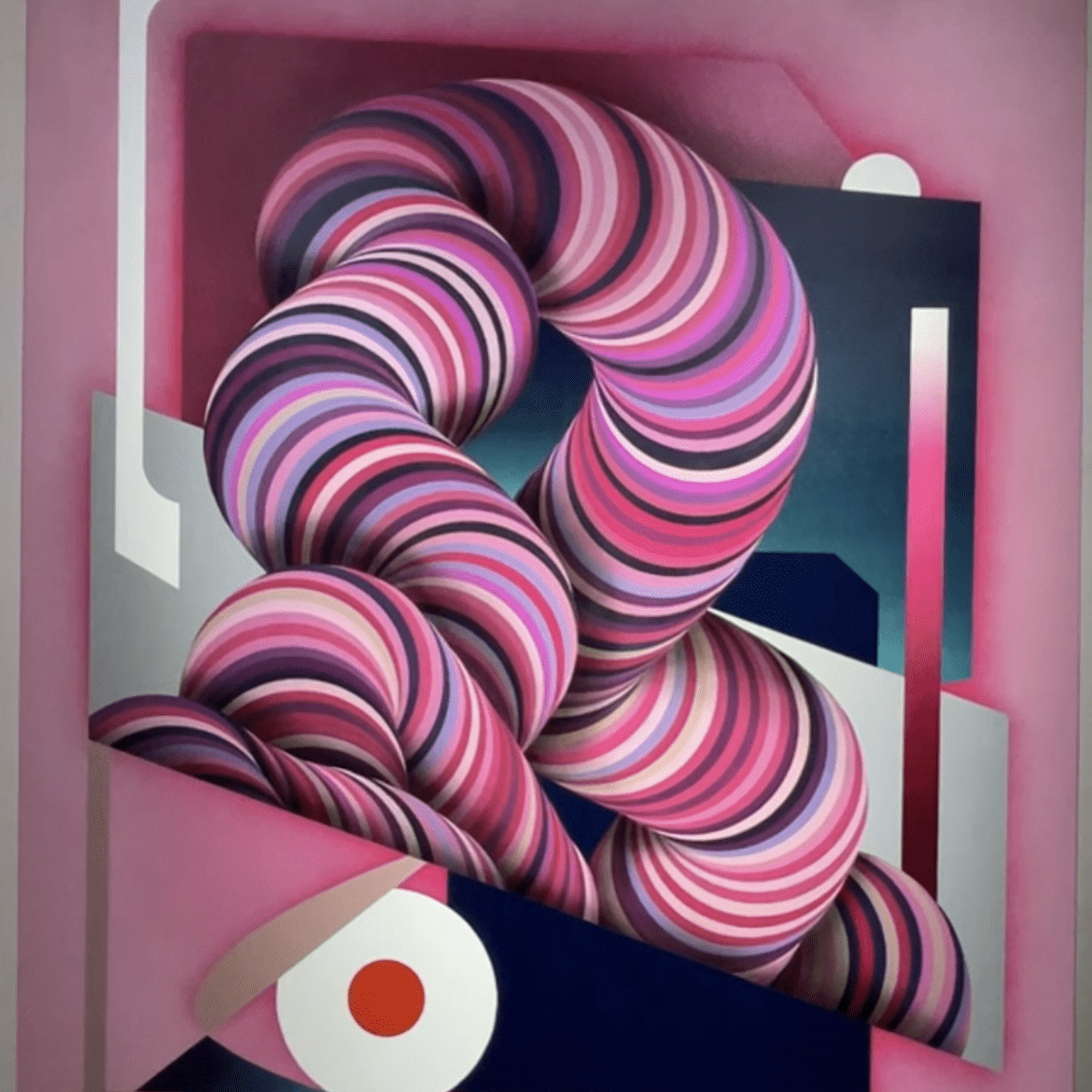 Pada Solo Exhibitionnya ini, Harishazka menuangkan 11 karya seni rupa yang dimana dalam setiap karyanya ini berupa abstrak geometris yang penuh warna. Beberapa karyanya pun memiliki bentuk serangkaian lingkaran yang saling terkait, berkelok-kelok, dan melengkung melalui komposisinya. Rasanya seperti menggambarkan sisi emosional dalam diri yang berjuang menemukan ketenangan di masa yang serba tidak pasti.