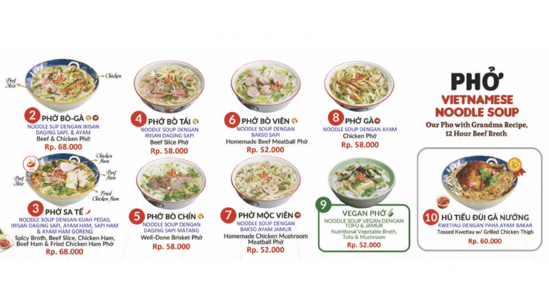Menu Pho Ba Ba