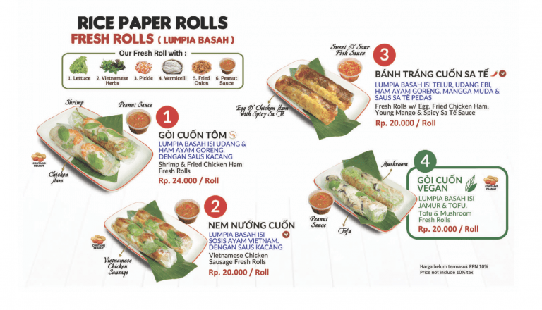 Selain Pho, tentu saja ada banyak menu khas Vietnam lainnya, seperti Bahn Mi (Sandwich ala vietnam), Bun (Vermicelli Salad), Springs rolls, Nasi Campur Vietnam, dan gorengan ala Vietnam. Karena udah di resto ini, sayang sekali kalau ga menyicipi menu lainnya. Akhirnya selain memesan Pho, kami memesan Bahn Mi dan Rice paper rolls nya.