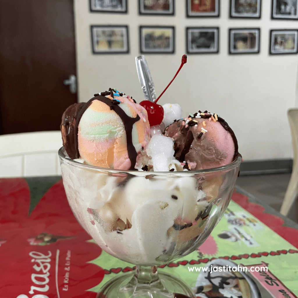 Brasil Ice Cream & Kopi adalah Salah satu es krim legendaris yang ada di Purwokerto. Toko Es Krim dan Kopi Brasil sudah berdiri sejak tahun 1968. Konon, nama Brasil berasal dari kata Berhasil, yang dimana didalamnya terkandung doa & harapan. Toko Es Krim & Kopi ini berada pada sebuah bangunan tua dengan tetap mempertahankan desain asli. Warna putih mendominasi fasad dan ruangan didalamnya. Juga beberapa sentuhan warna biru pada bagian pintu dan jendela. Rasanya memang seperti nuansa tempo dulu yang cukup kental.