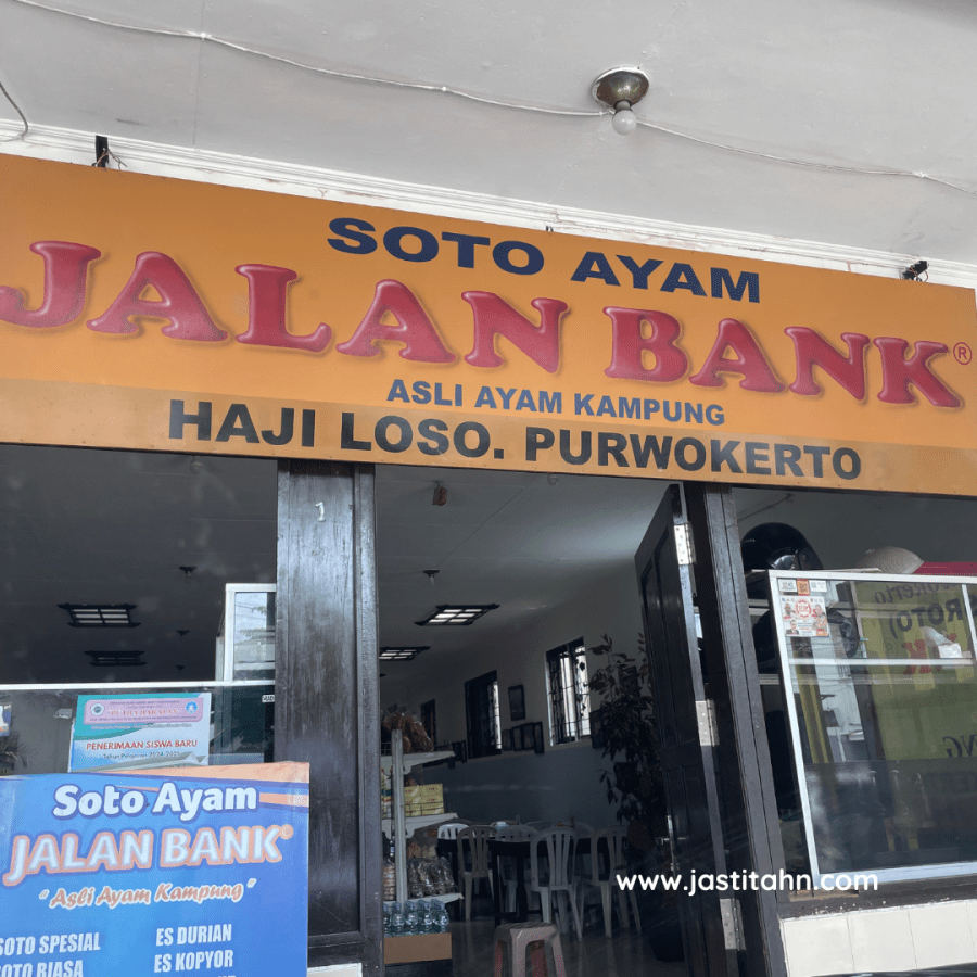 Soto Ayam Jalan Bank adalah salah satu tempat makan legendaris di Purwokerto yang sudah terkenal di kalangan warga lokal maupun pengunjung. Terletak di Jalan Bank, soto ayam di sini memiliki rasa yang khas dengan kuah bening yang gurih dan penuh rempah. Selain itu, soto ayam ini biasanya disajikan dengan nasi putih, irisan daging ayam suwir, telur rebus, dan pelengkap seperti daun bawang, seledri, serta sambal yang pedas.